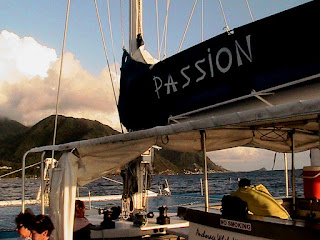 The scenic view of clouds building over the Dominica mountains as we headed south.